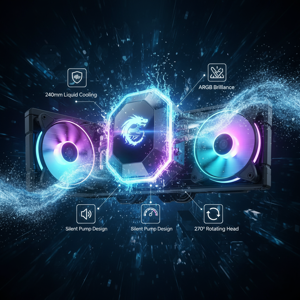 - ARGB Fanlar: Hem radyatör fanları hem de pompa bloğu ARGB (Adreslenebilir RGB) aydınlatmaya sahiptir. Bu aydınlatma, MSI Mystic Light yazılımı üzerinden diğer MSI bileşenlerinizle kolayca senkronize edilebilir.
