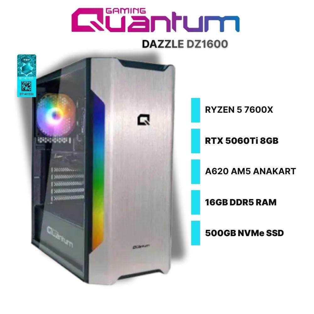 Quantum Gaming Dazzle DZ1600 AMD Ryzen 5 7600X 16GB DDR5 500GB NVMe SSD RTX5060Ti 8GB Freedos Gaming