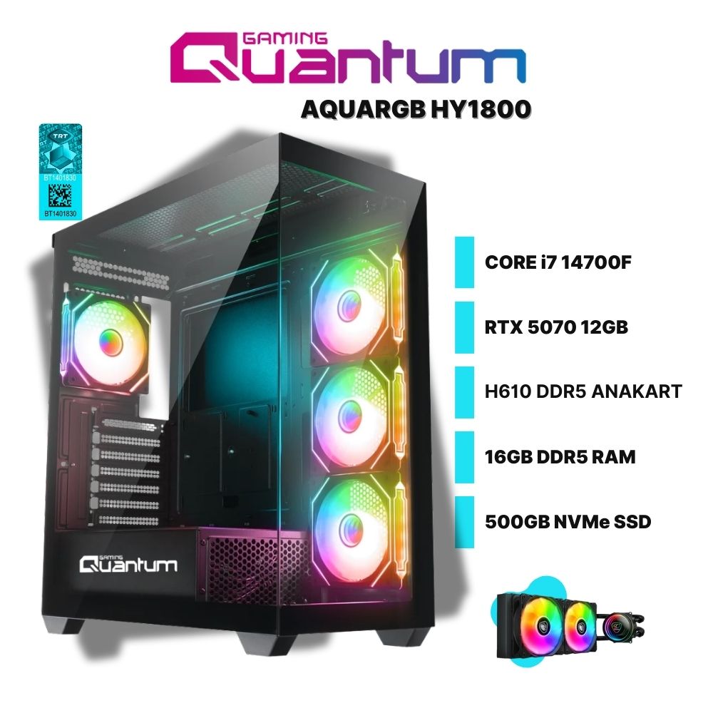 Quantum Gaming AquaRGB HY1800 i7-14700F 16GB DDR5 500GB NVMe RTX 5070 12GB 240 mm Sıvı Soğutmalı Oyun Bilgisayarı