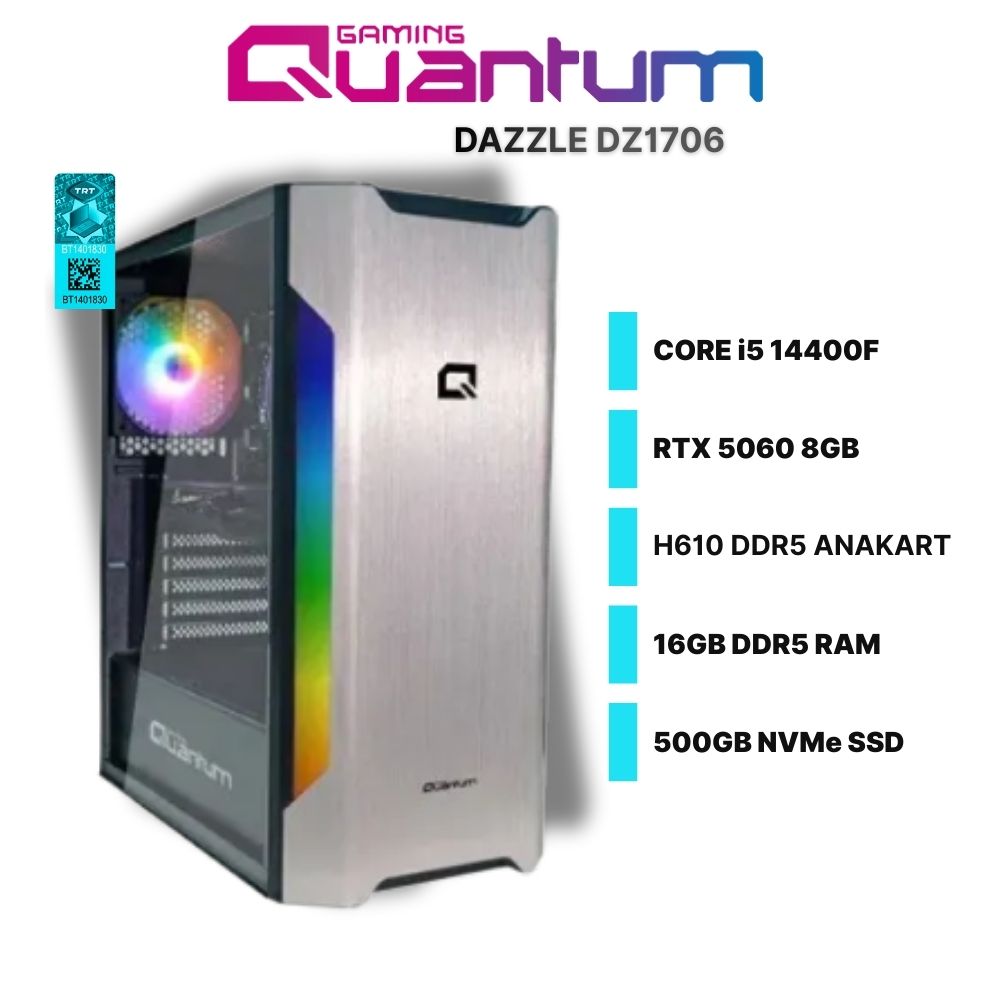 Quantum Gaming Dazzle DZ1706 i5-14400F 16GB DDR5 500GB NVMe RTX 5060 8GB Freedos Oyun Bilgisayarı