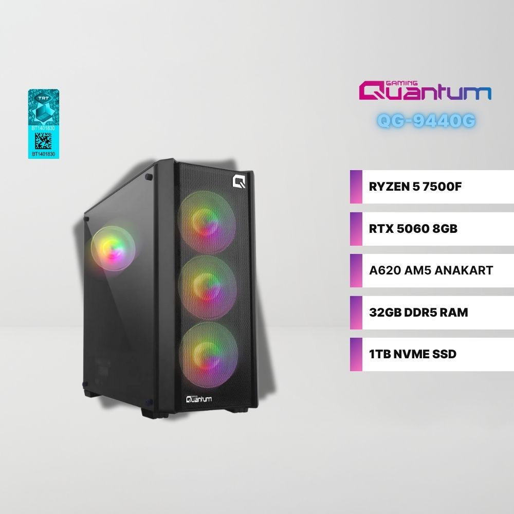 Quantum Gaming QY1610 AMD Ryzen 5 7500F 32GB DDR5 1TB NVMe RTX 5060 8GB Freedos Gaming Masaüstü Bilgisayar