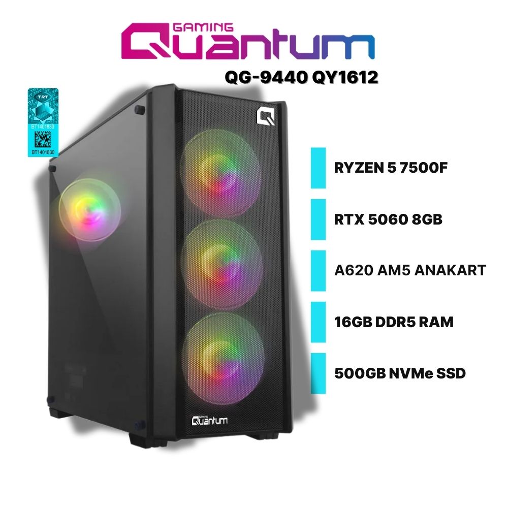Quantum Gaming QY1612 Ryzen 5 7500F 16GB DDR5 500GB NVMe RTX 5060 8GB Freedos Gaming Masaüstü Bilgisayar