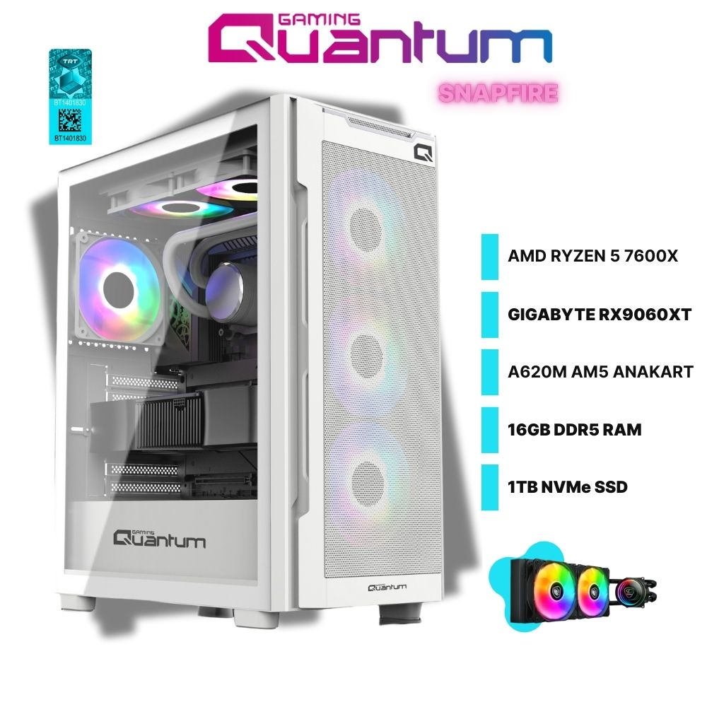 Quantum Gaming Snapfire White Ryzen 5 7600X 16GB DDR5 51TB NVMe SSD RX 9060XT Masaüstü Oyuncu Bilgisayarı
