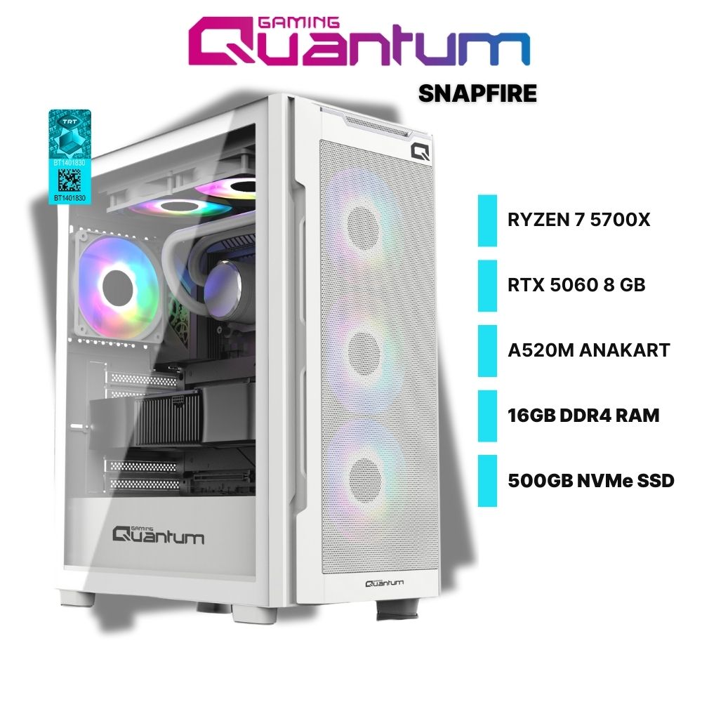 Quantum Gaming SnapFire White Ryzen 7 5700X 16GB DDR4 500GB NVMe MSI RTX5060 8GB Freedos Masaüstü Oyun Bilgisayarı