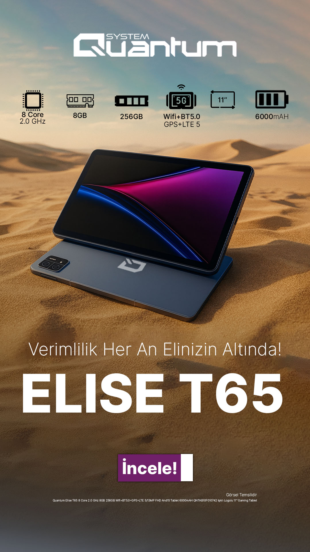 Quantum Elise T65 8 Çekirdek 2.0 GHz 8GB 256GB 11" FHD Android 14 4G/LTE Tablet